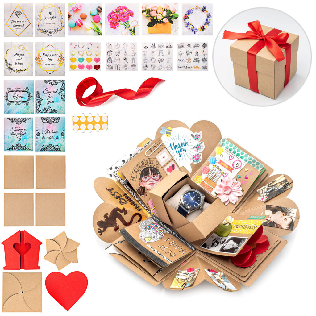 Pudełko niespodzianka z naklejkami – Kreatywny album prezentowy -Wybuchowe pudełko pełne zdjęć – Specjalny prezent na wyjątkową okazję